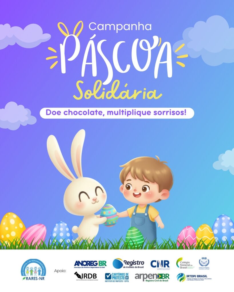De 23 de fevereiro a 2 de abril, os cartórios se tornam pontos de arrecadação de ovos de chocolate e chocolates diversos, que serão destinados a entidades beneficentes que atuam com crianças e adolescentes em situação de vulnerabilidade. Mais do que chocolate, essa campanha distribui carinho, atenção e a certeza de que alguém se importa.